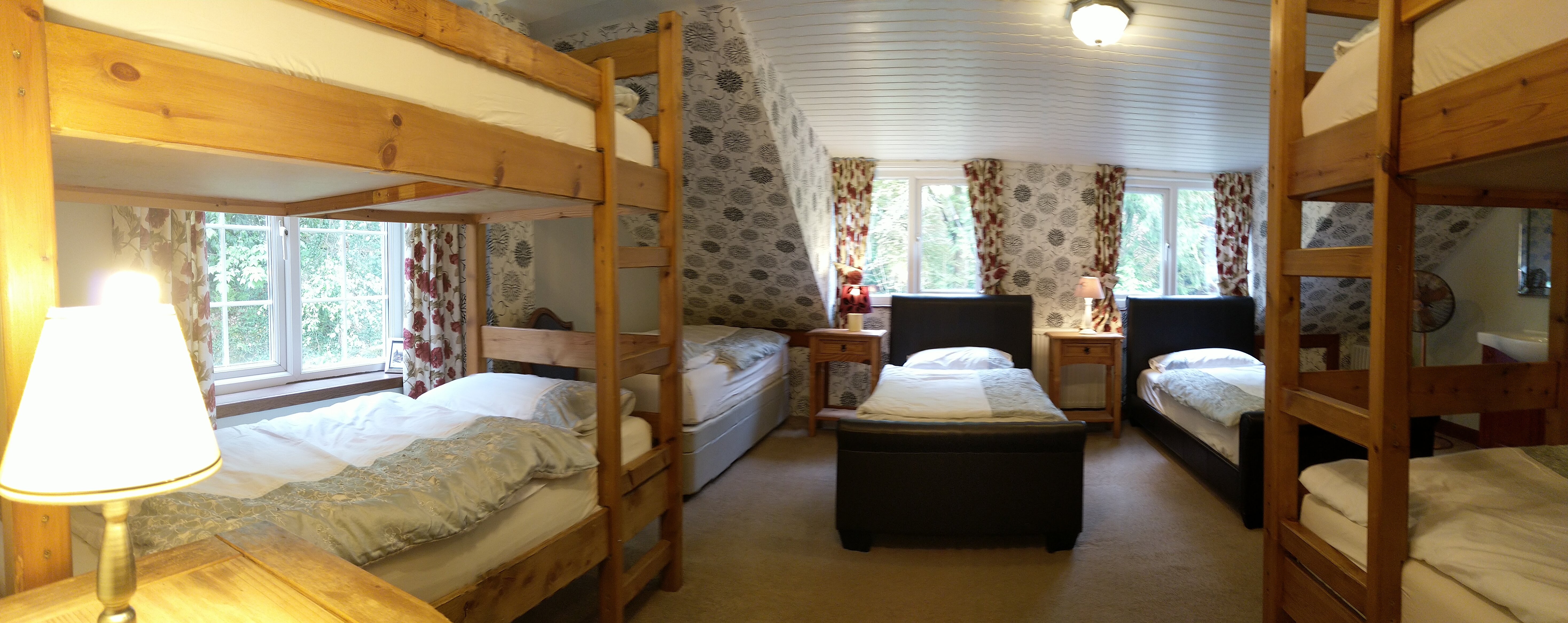Large Family Room (Room 4) - 9 beds (three large bespoke built bunks & three singles with hypo-allergenic memory foam mattresses)
